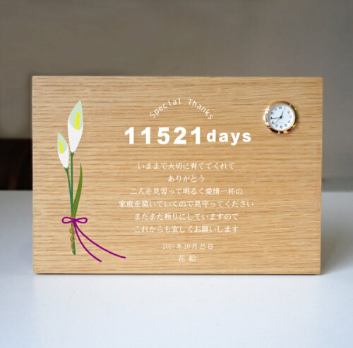 「子育て感謝状 フラワーシリーズ」 ウッドプレート置き時計 結婚式 両親 プレゼント 子育て修了証 記念品贈呈